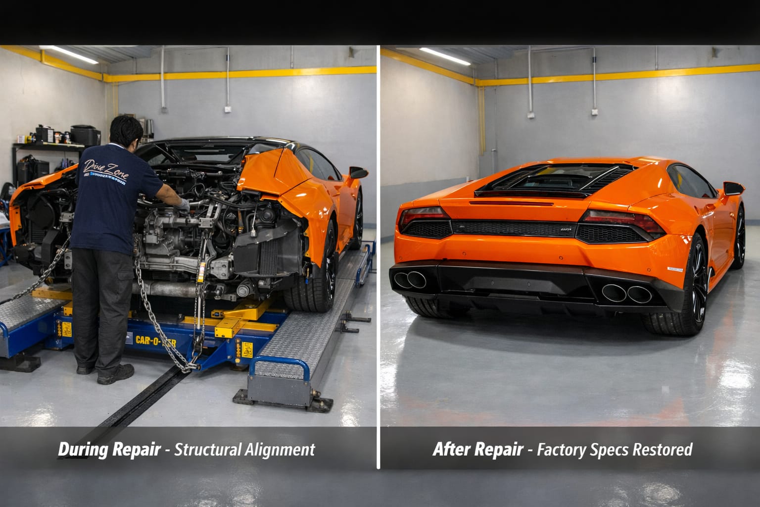 At Drive Zone Auto, we provide expert repair services using advanced technology and precision tools. We specialize in CCM fixing, CCM chassis alignment, and accurate car alignment to restore your vehicle to factory standards. Our services also include frame structural repair, denting & painting, and complete accident damage restoration with high-quality workmanship.